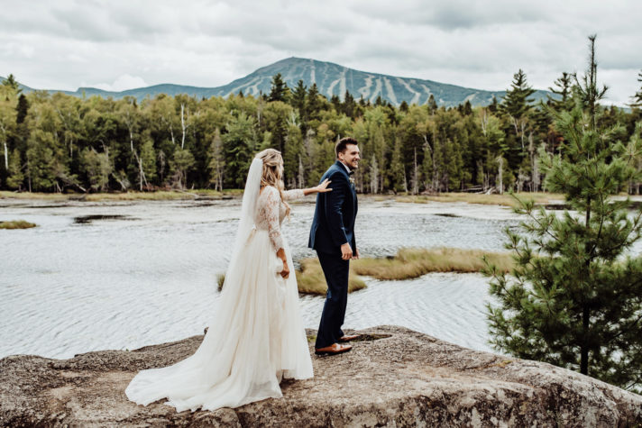 This Mountainside Wedding at Sugarloaf Includes a Stunning First Look Backdrop