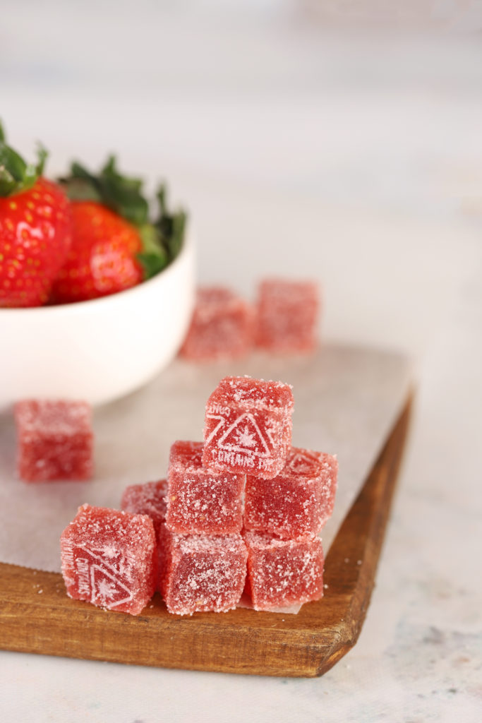 At SeaWeed, we have a strong focus on live resin, because we have developed a highly specialized lab to produce it. We use fresh frozen flower, which helps to to maintain terpenes—increasing the aromas and flavors, and providing a well rounded high. In this facility, we make a range of extracts like shatter, which is cannabis extract that looks and feels like glass, which you smoke by vaporizing it through a process called, “dabbing.” Then we also have a kitchen, where we make full spectrum live resin edibles. Full spectrum means we’re trying to keep everything from the plant. We have gummies and chocolate bars that are strain-specific. Someone might come in and ask for a gummy that won’t put them to sleep, and we can recommend a live resin that’s more energizing. We pride ourselves on the quality of our concentrates, from the cannabinoid content to the clarity of the oil, which is reflected in our edibles as well. Our gummies are actually pâte de fruits, a confection developed in France made with real Maine fruit, and are vegan. Our chocolate is organic, and we will often add inclusions like nuts or dried fruit for an added touch. We value the aesthetic experience of smelling and tasting food and cannabis.