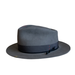 This is not your grandfather’s hat, but one day it could be your grandson’s. The velvety, soft rabbit fur teardrop fedora is trimmed with grosgrain ribbon, leather laces, and detail stitching, handmade exclusively for Flower s and Candy by Mad Patti Hat Company in Brunswick.