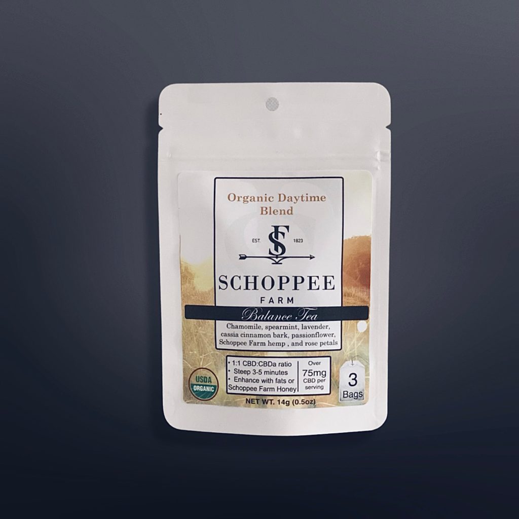 Enjoy a midday cup of tea while getting your daily dose of CBD and CBDA! This tea is a light and fragrant blend of organic Schoppee Farm hemp, chamomile, spearmint, and passionfruit.