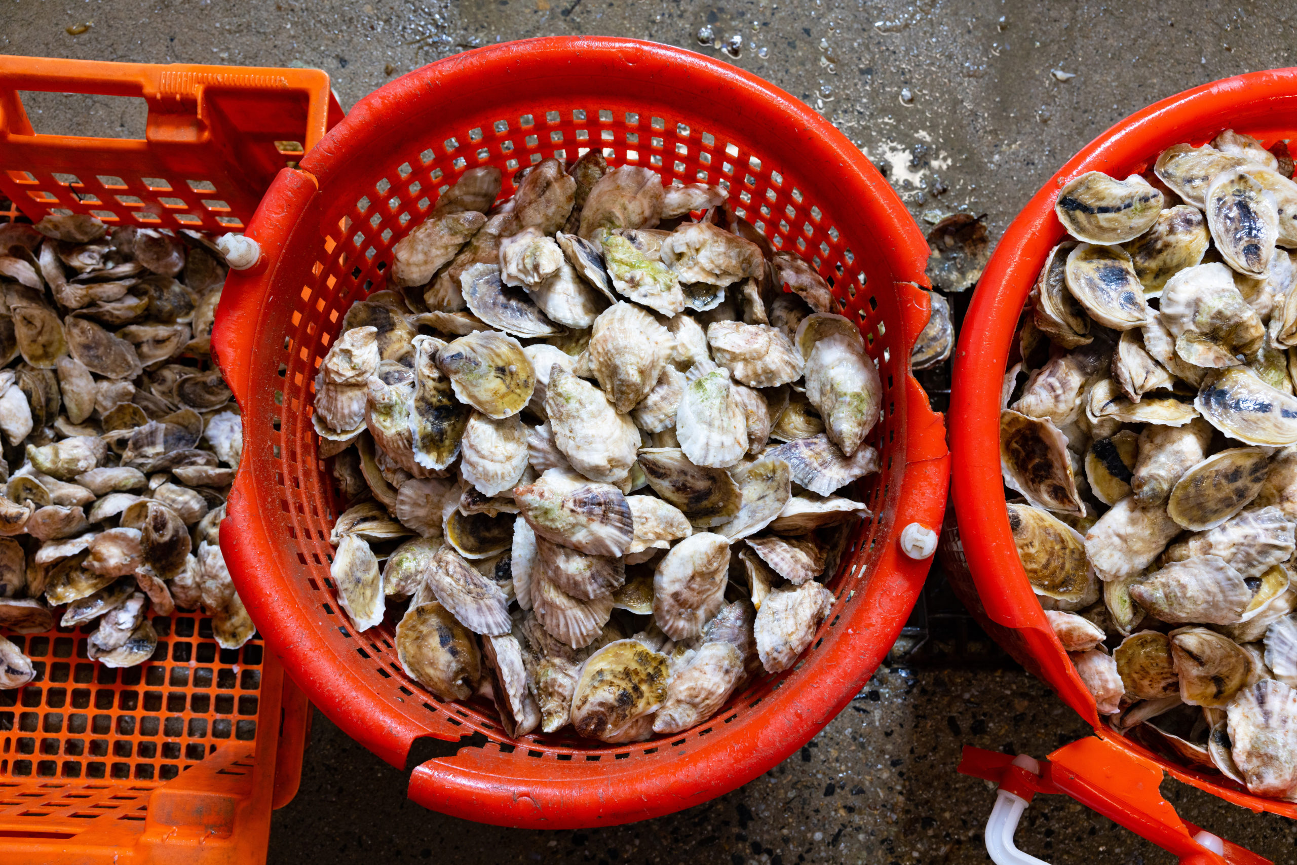 Thankfully, farming caged oysters for restaurants is one of the only fishing practices that actually helps restore wild populations. The cages and the shells themselves provide habitat for and encourage the regrowth of other species of young sea creatures, like the sea squirts. They’re also home to oyster larvae, which can escape and seed wild populations on their own. Unlike most seafood, farmed oysters not only feed and “house” hundreds of species of fish, they also help to clean waterways, filtering 50 gallons of water a day from pollutants like excess nitrogen from agricultural runoff. That clears the way for more sunlight to hit the ocean floor and grow eelgrass, which provides a habitat for many species. So, by snacking on oysters at restaurants, you’re helping to enrich our waterways. As a result, scientists around the world have started encouraging oyster farming—which uses almost no greenhouse gas emissions, water, feed, fertilizer, or food—to grow back species that have begun to drop off and restore biodiversity in our oceans.