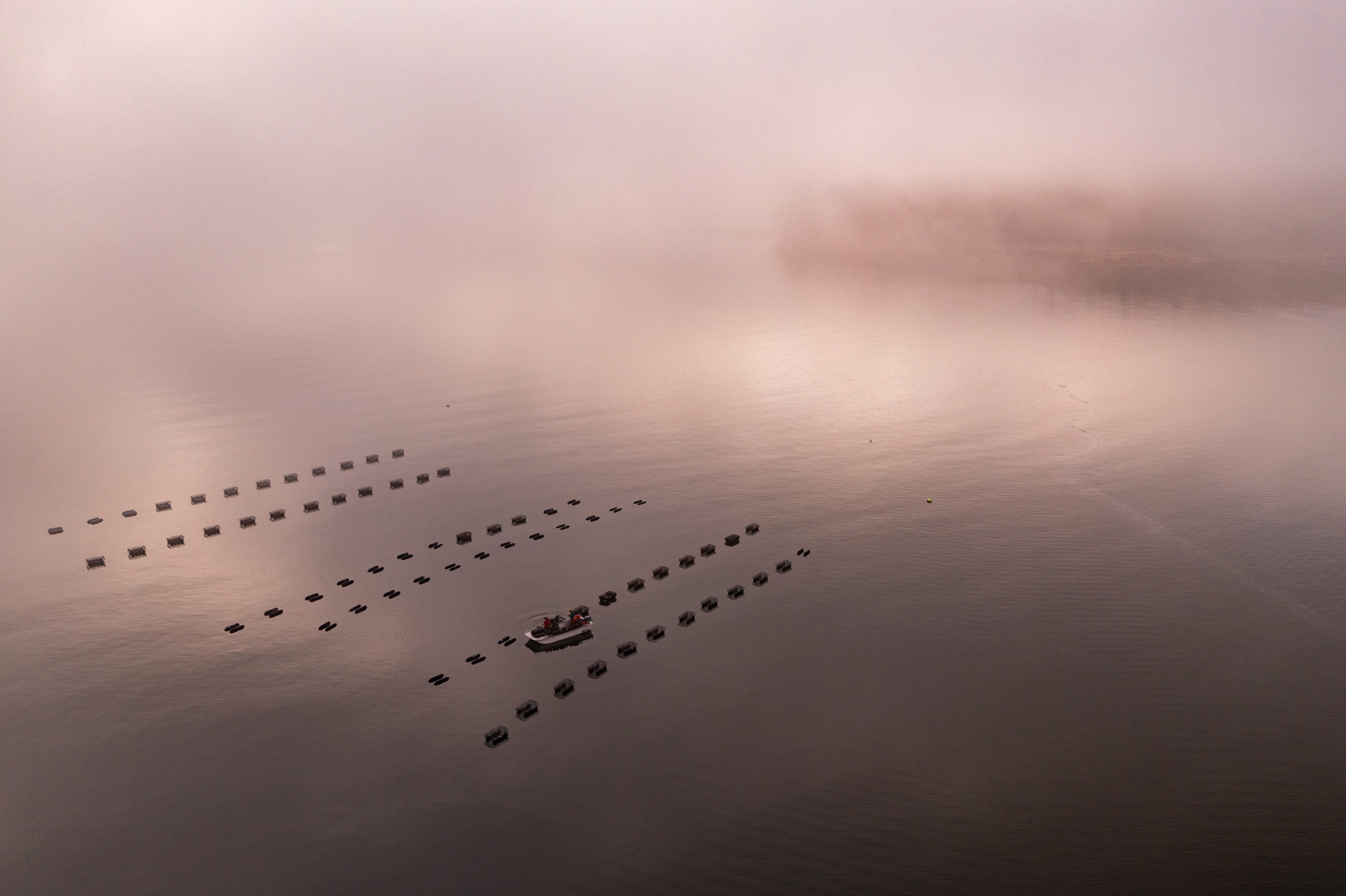 The women untie the boats, and we make a final stop at Gaiero’s floating cages, one of which has sunk to the bottom—she’ll have to dive down and drag it up later. The good news is, her oysters have doubled in size. And, with rain slapping my face as we ride Tidal 9 back to the dock, Gaiero tells me her tips for making it on a new farm. (Oyster farms aren’t the kind of fishing operations where secrets are kept.) First, she says, take your friend up on her offer to come out and help—and take a hint when she “casually leaves a lemon and a knife at the helm.” Next, use your resources to build a few depend-able side hustles.