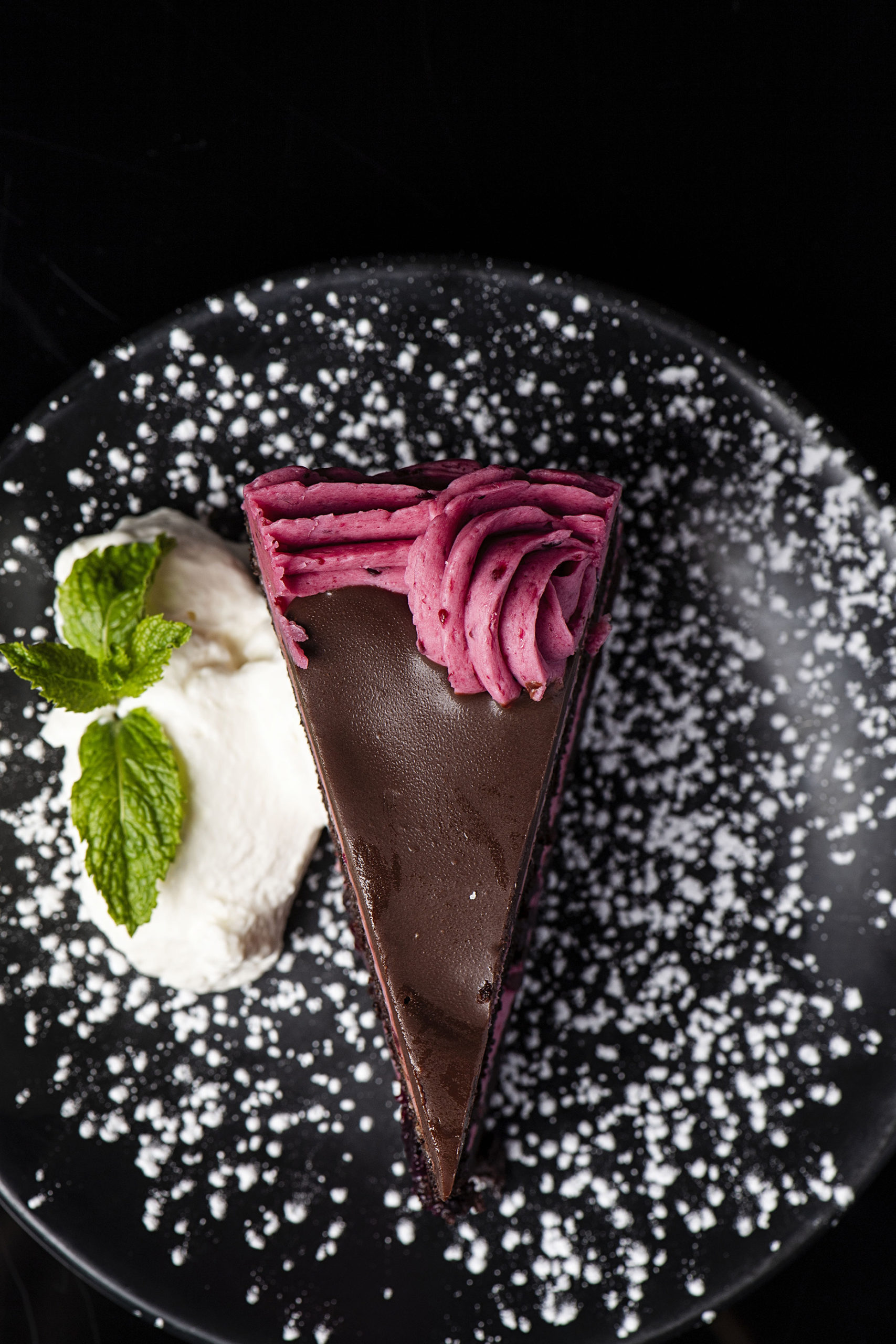 My husband and I share entrees—the spicy shrimp shio ramen is a must for us, and while it’s difficult to narrow down our other choice, I ultimately am swayed by the seared scallops in an enticing pool of potato-leek puree with spinach, pork belly, and mushrooms. Six scallops with a perfectly crusty sear arrive on a large plate with nearly as many cubes of crispy pork belly. The vegetable puree creates a silky, cream-like base for the seafood, while floating dots of a green herb oil lighten the dish. The handmade ramen noodles and fat shrimp are surrounded by a rich, savory broth that Margolskee makes from a variety of roasted poultry and beef bones. He’s been developing the broth recipe since the restaurant opened and says it only gets better each week.