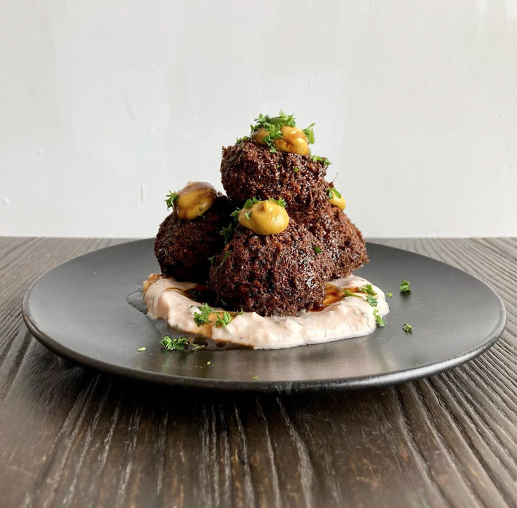 Garum! We make a range of garums (fermented fish sauce) in the traditional Roman style, which range from a fully vegetarian mushroom garum fermented with koji, to a mussel (from Pemaquid Mussel Farms) garum fermented with eel scraps from American Unagi.