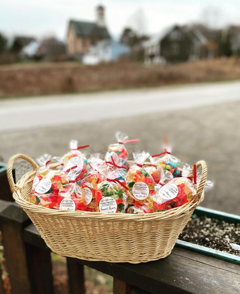 A historic, coastal gift shop offering ice cream and penny candy in an old-timey setting.