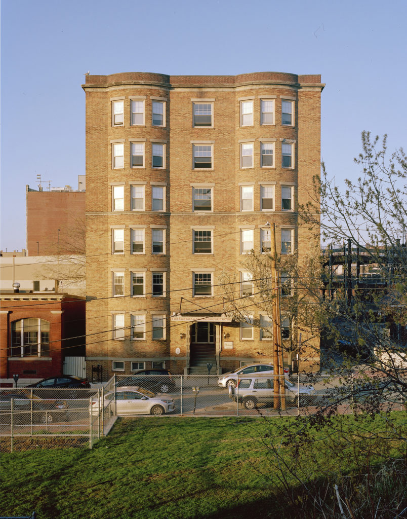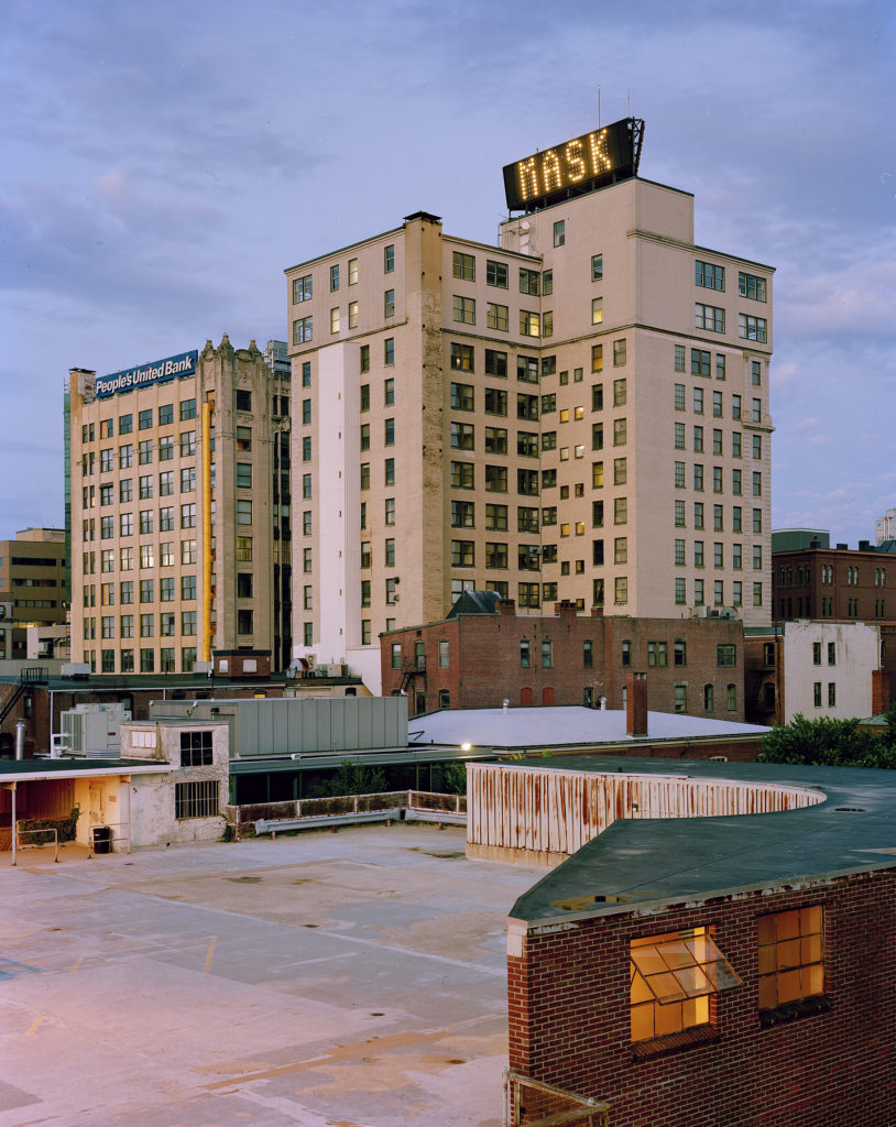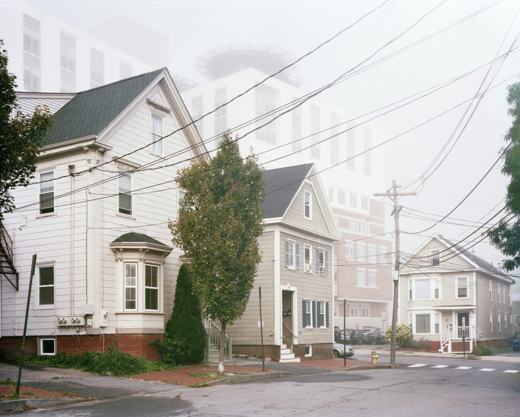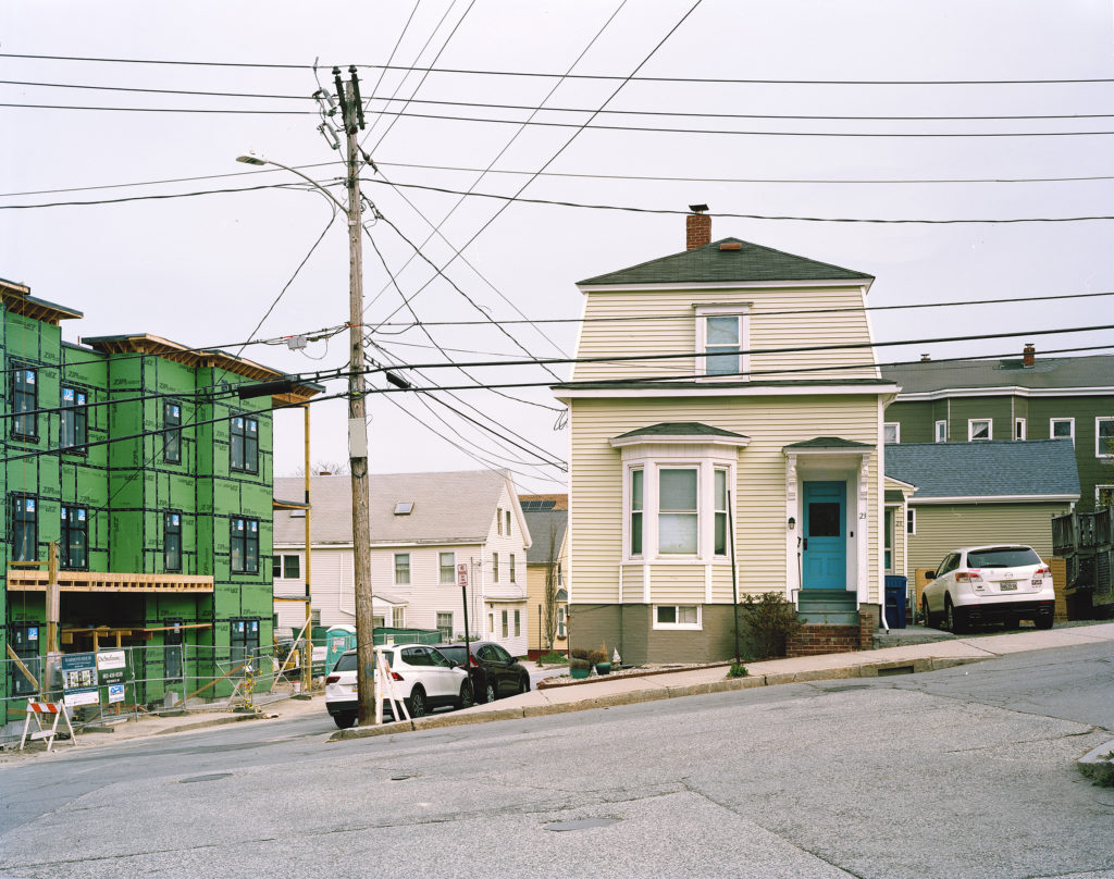 When Mark Marchesi studied photography at Maine College of Art, he focused on portraits of people. But on a series of extended road trips around the United States, Canada, and Mexico after college, he found himself taking portraits of buildings instead. He continued the practice when he returned to Portland in 2005 and has been documenting the area’s changing architectural landscape ever since. In the third volume of his Greater Portland series, published at the end of 2021, Marchesi captures how quickly Maine’s largest city has evolved in recent years. Some parts of the city documented in the book, which includes 48 carefully composed film photographs and 112 mobile phone photos taken between 2018 and last year, have already changed, including an under-construction condo in the city’s East End that is now complete and the B&M Baked Beans factory, which shut down production last year and had its smokestack removed. Most of the buildings Marchesi captures with his Linhof 4×5 field camera aren’t as iconic, but they provide the city its character, particularly when contrasted with new development. The former site of Joe’s Smoke Shop, which was torn down in 2015 and replaced with a condo building, is an example of that, Marchesi says. “It’s not a masterpiece of architecture, but it’s Portland,” he says. “It was something that defined the city. What went up in its place is one of these sort of homogenized complexes that could be the same as anywhere in the country.”