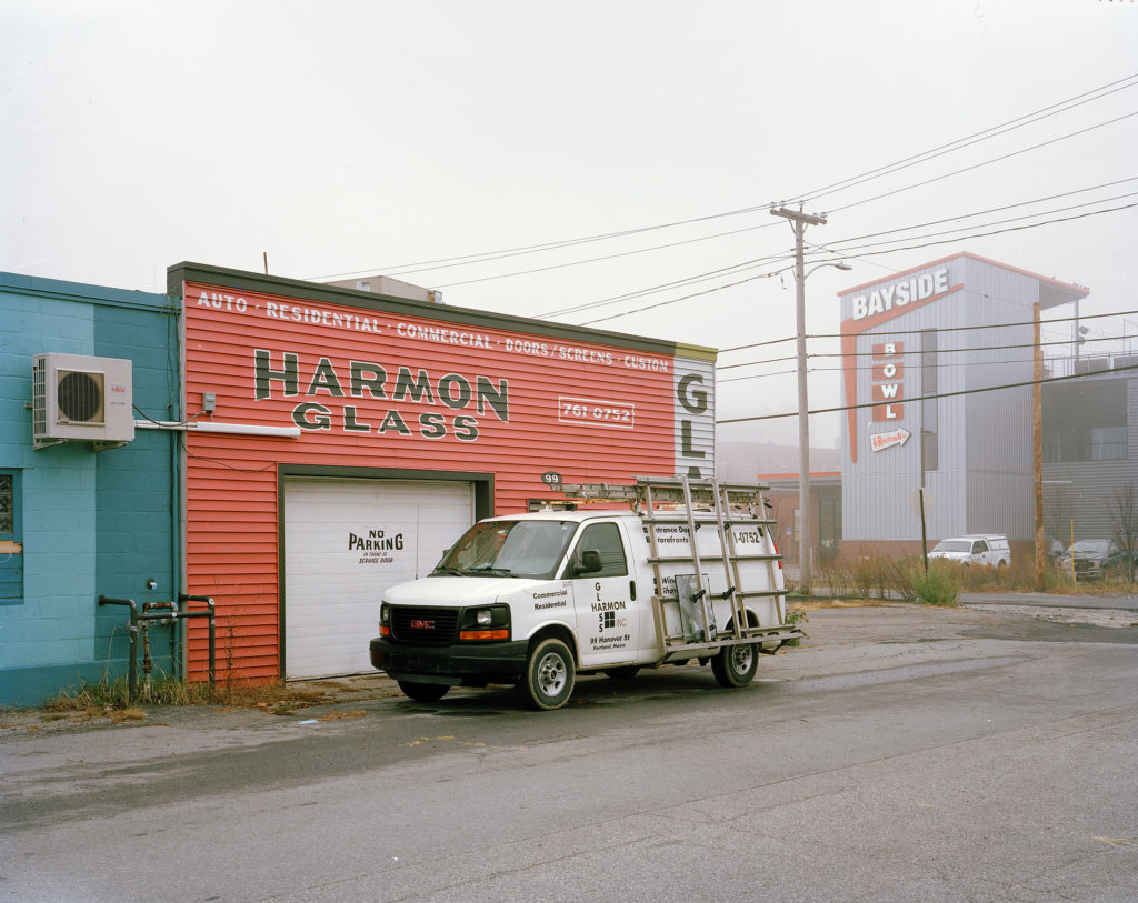 Harmon Glass on Hanover Street, with Bayside Bowl in the background.