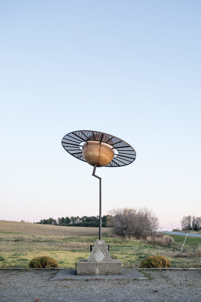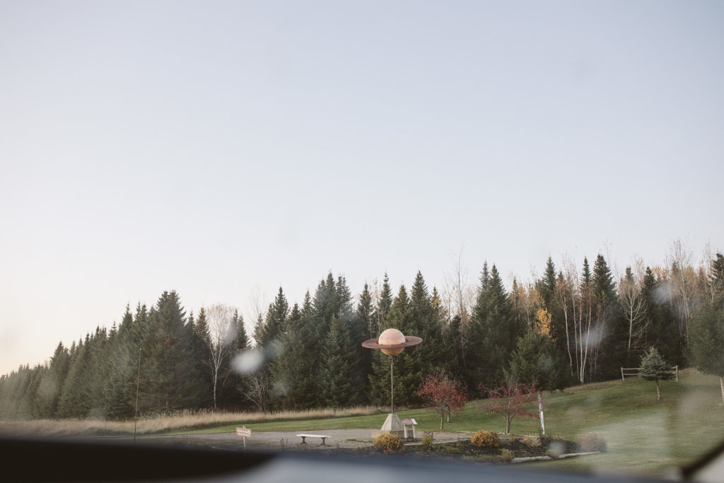 A taxidermy bear in the window of a Presque Isle storefront. Part of a three-dimensional scale model of the solar system, Saturn is located in Westfield.