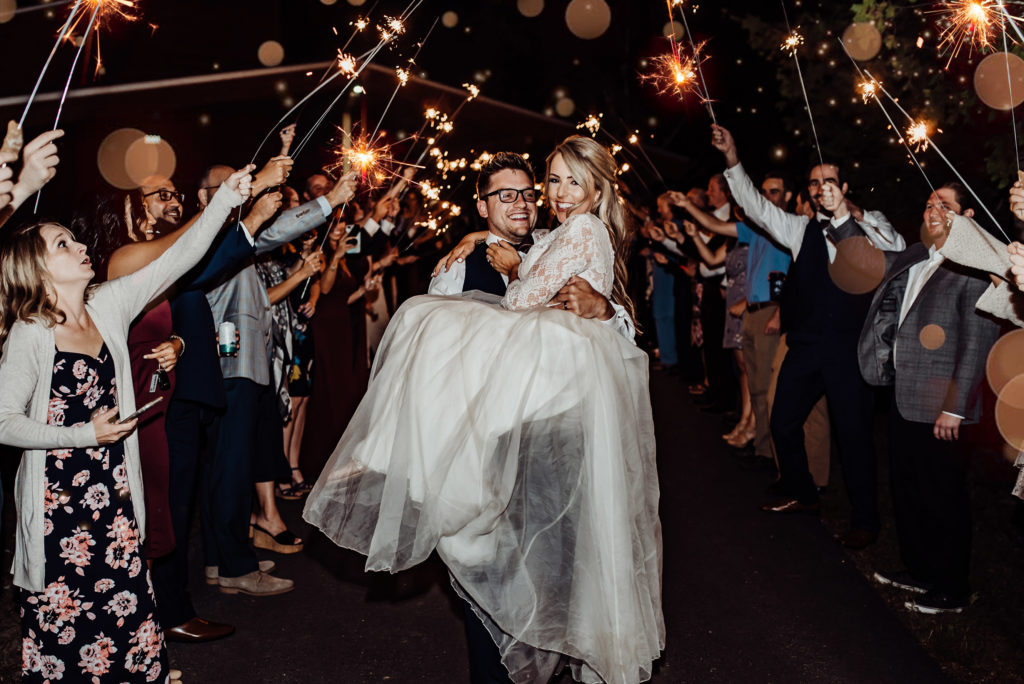 One Memorial Day weekend, the couple had just arrived home from a weekend at camp with family. Chris disappeared upstairs almost immediately, and Brooke assumed he was just unpacking for a while. When it was time for bed, the couple made their way upstairs. Chris walked into the room while it was dark and accidentally ran into the corner of his dresser. “I started laughing and wondering what was going on with him,” Brooke says. When she turned on the light, a ring box was sitting on the bedside table. She was absolutely shocked. Chris got on one knee. “I have absolutely no idea what he said,” Brooke says. “I stuck my hand out, and he said, ‘So, is that a yes?’”
