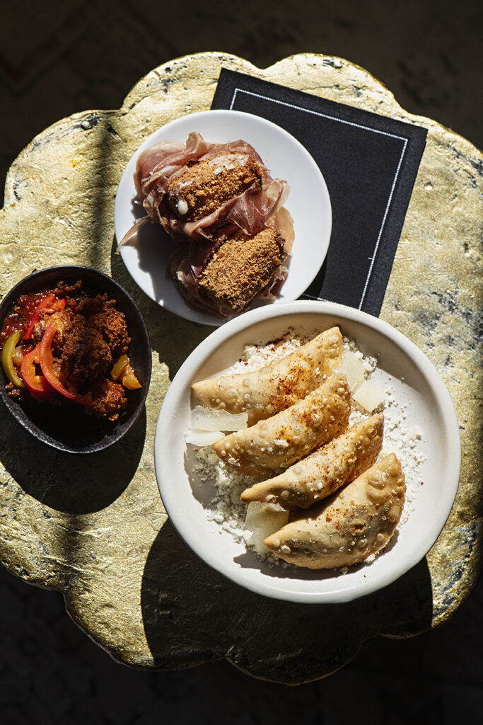 Beyond the bar, chef Michael Bergin’s menu of appealing small plates, handmade pastas, and charcoal-grilled meats is equally responsible for the restaurant’s draw. Bergin, who moved to Maine from Boston with his family in August 2020, worked for years at several fine dining French and Italian restaurants in Boston and New York City. Once in Maine, he took a job with Big Tree Hospitality, working at Honey Paw in Portland and at the restaurant group’s Biddeford commissary kitchen.