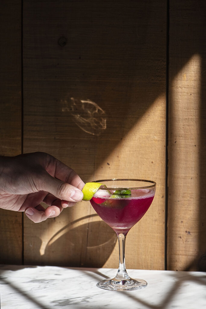 The bar has become a favorite for locals as a place to chat with friends and enjoy a specialty cocktail or a glass of wine from an extensive collection curated by Matt. The couple previously worked at Batson River Brewing and Distilling’s Kennebunk location, Matt as a cofounder and Mariah as the front-of-house manager, and the two have used their industry knowledge to create an intriguing but approachable bar program. Matt tells me that the bar has become such a hotspot that the homeowners of the adjoining neighborhood have cut a path through the woods to the back of Wandby Landing’s property for easy access.