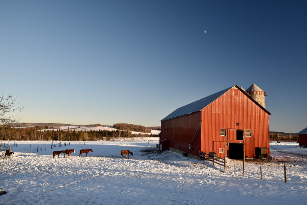 Growing up in “The County”—a place comprising endless back roads, vast fields, and scenic views around every turn—made me come to appreciate the beauty that surrounds us all. Every time I visit, I make it a priority to ride those back roads, photographing as much as possible. While out on one of my afternoon rides, I came upon one of the Amish communities, where the horses just happened to be outside despite the cold temperatures. The red barn, rising moon, and gradient of blue sky were too beautiful to resist.
