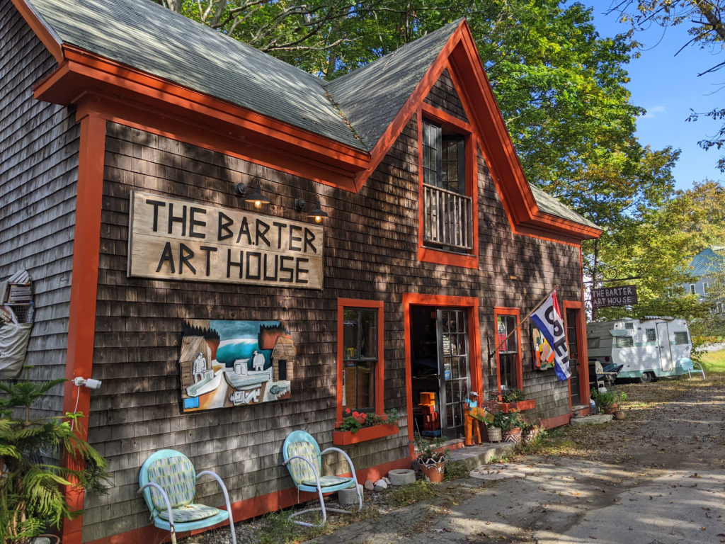 Across the street sits a curious sculpture of a large wooden head seemingly built into the landscape. A small carved sign claiming the “Gallery Is Open” directs you to take a right. The Barter Art House Gallery is a building that is as quirky as the sculptures that surround it, and features the works of artists Matt Barter, Philip Barter, and Tim Fischer. Around the corner, the Bayview Gallery is another great space to admire and purchase art from renowned artists across New England.