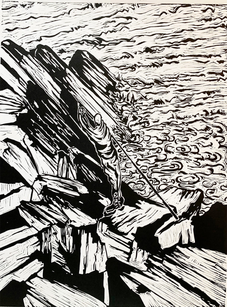 Linoleum block print, 24″ x 18″ | Roux and Cyr International Fine Art Gallery | Portland | rouxandcyrgallery.com