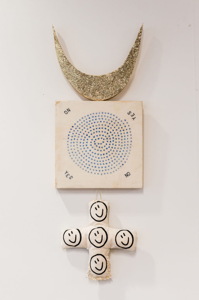 I have just exited an intense period of creating a new body of work that explores magic, objects, and mediumship heavily inspired by botánica culture and the syncretic spirituality of South Texas. Although I previously identified as artist entrepreneur, this new work focuses more on the similarities of visual language in spaces of retail and worship. Visual merchandising and altar building share similarities in creating space to invoke desire or wish fulfillment through object placement. By indulging in the nostalgic and problematic descriptor of Americana, I explore the historical crossroads of where manufacturing and magic meet to further survey the history of selling empowerment in the United States.