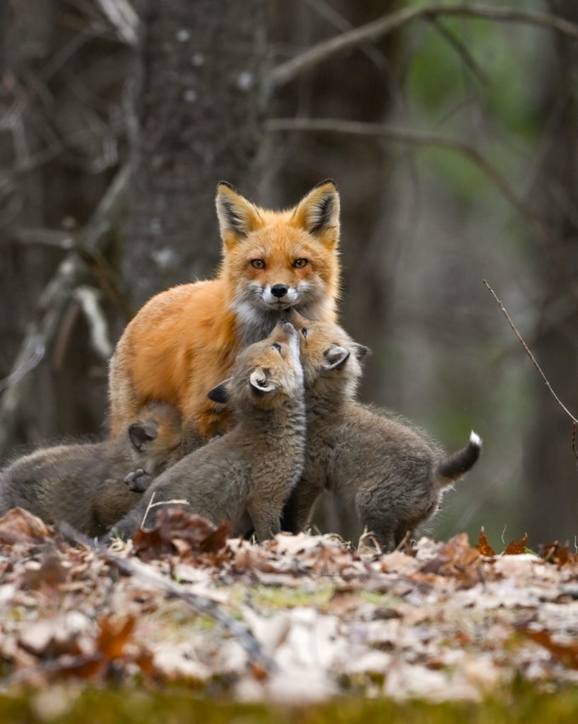 After posting online about how I was looking to take photos of fox kits (baby foxes) and that I would make a print for whoever could lead me to them, I got a message from someone in Bridgton who had recently seen kits emerge from their den. They sent me pictures of seven kits on their lawn, and it was amazing. I drove to Bridgton that same day and waited. Sure enough, the mother came out of the den first, and the kits followed soon after. For a wildlife photographer, it was a dream.
