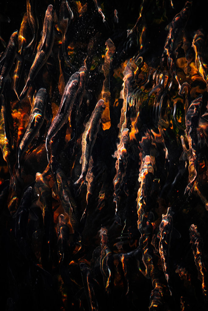 Folks from all over the Northeast come to Damariscotta Mills each year to witness hundreds of thousands of alewives navigate one of the state’s most extensive fish ladders. As the fish enter the channel, photographers capture diving osprey and eagles surfacing with alewives clenched by their talons. As I stood upon the bridge waiting for birds with camera in hand, the scene below caught my eye. A massive school of alewives entered the channel just below me, and with the light just right this made for a wonderful composition.