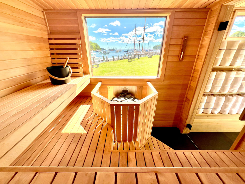 Saunas, wood-fired hot tubs, and ice baths have been popping up in backyards and weekend lodgings across the country for good reason. The word sauna, according to the Finns who invented it, refers to both a place for contemplation and connection and an activity—a hot-air bath that relaxes body muscles, increases blood circulation, and releases endorphins, among other benefits. Josh and Beth Goodman are the cofounders of Native Sauna, a new luxury sauna builder and rental company offering mobile sauna and wood-fired hot tub rentals by the day, 75-minute sessions at their sauna station in Rockport Harbor, and custom in-home builds. “Saunas nourish your soul by providing a refuge for relaxing in a calm atmosphere perfect for quiet contemplation, meditation, and rejuvenation,” Beth says. “Saunas also provide a perfect environment for gathering with family and friends; a place to talk, to laugh, to connect, and relate to one another.”