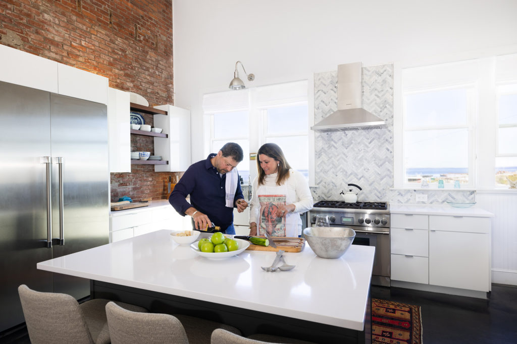 The three agents met at Safe Harbor Marina, and over a seaside coffee an offer was made. The owner would get exactly what she wanted for the unique property with a killer view, if she could give Michael and Fletcher some time to sell their own house first. “She agreed and took it off the market,” says Michael. “We were so happy because we had been worried. It was the beginning of this very fervid market, and we thought, if we’re not all-cash, and we can’t come in there and waive inspections, then we’re not going to get it.” Michael assumes the owner’s willingness to wait had to do not only with the fact that the three were colleagues in the same business, and in the same town, but also because her home would be going to a family with local ties: Michael is from Portland, and Fletcher grew up in St. George. “We were going to make it our home, not an income property,” he says, “and I think that was meaningful to her.”