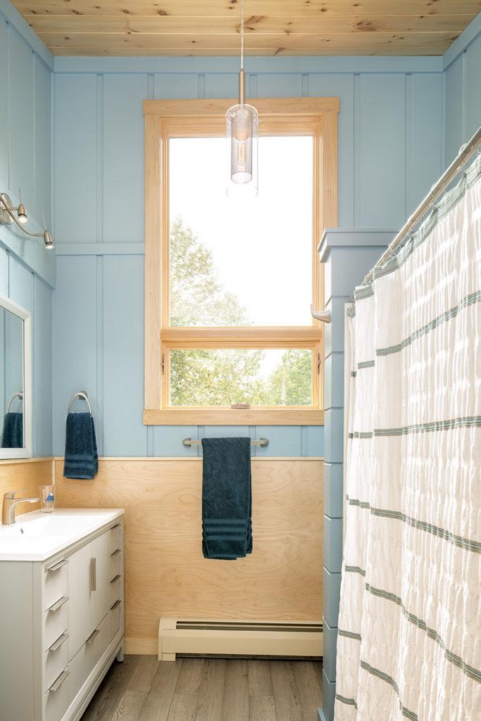 “We’ve slowly replaced every window in the house with windows from Marvin Design Gallery from Eldredge Lumber in Portland. We’ve also redone the siding—in phases, with the last two sides not going on until last year. They were the expensive sides, with massive windows looking out toward Sugarloaf. The cabinets are original. We just painted them and had new countertops from IKEA put in. The table we got is also IKEA—there’s a lot of IKEA stuff. We were trying to make it a little more Scandinavian with the birch veneer plywood, brighten it up. It was dated and dingy, and it was fully furnished, too. We took a lot of trips to the dump.”
