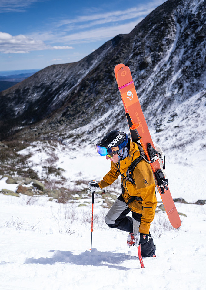 McCarthy first fell in love with skiing as a child when his family, who lived in Saco, went in on a condo near Sunday River. At first, it was all about the downhill. But when McCarthy was 12 years old, his neighbor on the mountain, Paul LeBlanc, took his son and McCarthy on their first ski touring expedition, skinning up a mountain and skiing back down. “I always looked at what Paul was doing, and thought it was something so special. It was a different level of adventure than what everyone else was doing,” McCarthy says. “Uphill skiing is all about the adventure. To be able to get out, to get away from other people, to explore—it’s magical.”