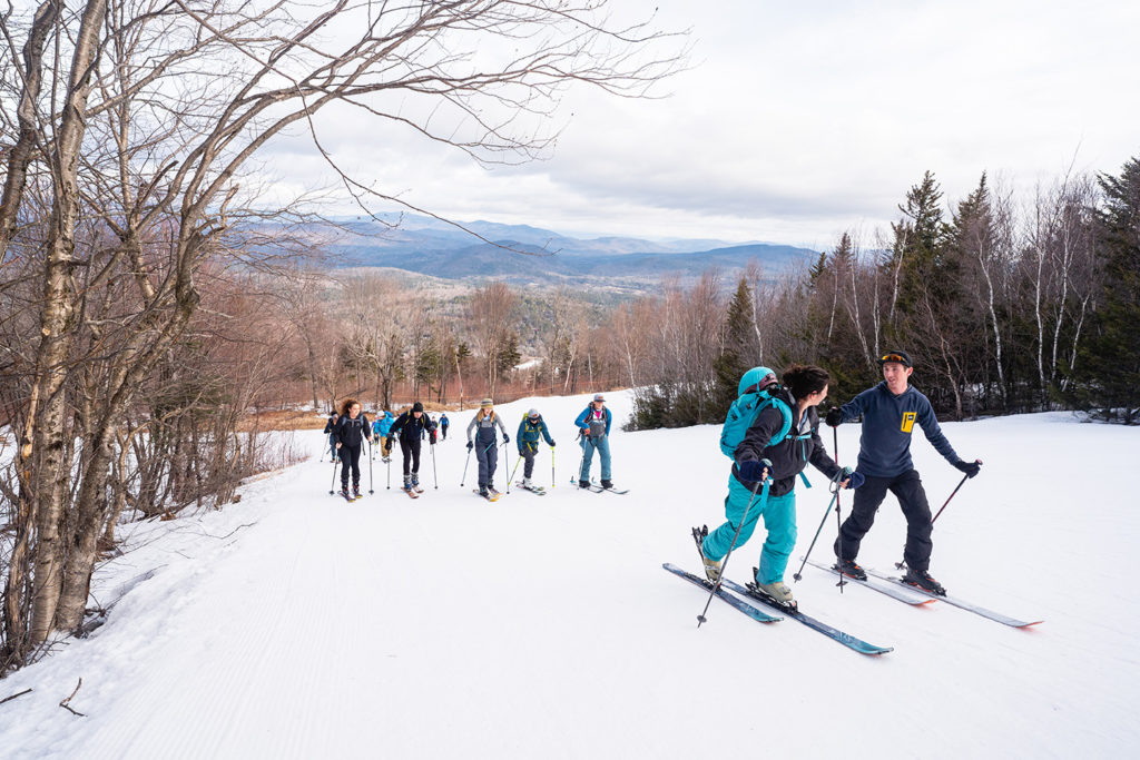 A day with Inclusive Ski Touring goes something like this: you show up at Mt. Abram in the early morning. Gear is available for rent, if needed. A guide gives an overview of the day and a quick safety briefing, any questions are answered, and then you’re off. Summiting the mountain via the 1.4-mile alpine ski trail takes 90 minutes, with an elevation gain of a little over 1,000 feet. Gorgeous mountain vistas greet you at the top, and then you lock in your boots and ski back down, only to turn around and do it all again, if you choose. You’re off the beaten trail, away from the hustle of the resort. There’s an element of adventure, and wildness. Every turn is hard-earned.