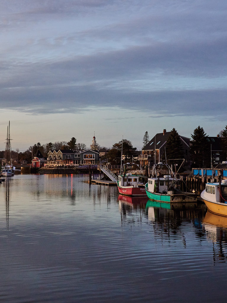 The misting fog is setting in again, so we take a drive up Ocean Avenue along the rocky shorefront and stop for the view near the sea spout that splashes high above the rocks in a saltwater plume and again at the Walker’s Point lookout in Kennebunkport (compound of the Bush family). We don’t go far, though, and spend much of the day on a slow tour of the rolling, coast-hugging road to Cape Porpoise and back. In the afternoon, inspired by seasonal menus and the Maine outdoors we’ve been observing, we’re tempted by the “Nurture and Nourish” spa offerings at the White Barn: wraps, soaks, and massage treatments, plus special punch cocktails and treats made with ingredients such as local honey, berries, ginger, and maple syrup.