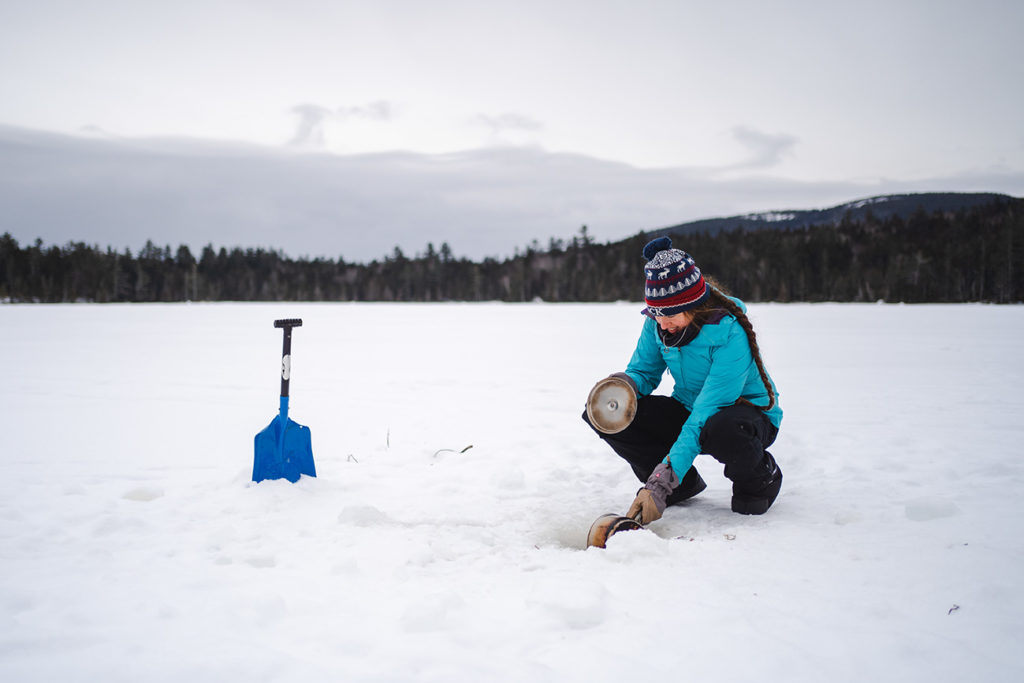 on a snowy expedition to find peace in Maine’s wilderness.