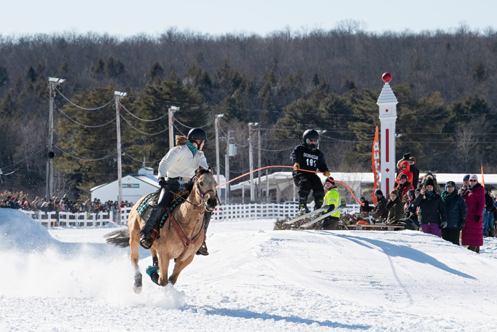 Horseback riders, skiers, and snowboarders meet in Skowhegan each February for a skijoring spectacular you won’t want to miss.