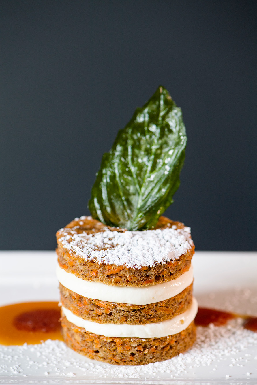 We also try the scallops, coated in freshly cracked black pepper and then seared until a hearty crust forms. Steve tells me later that applying high heat to the black pepper takes away some of the stinging spice, mellowing it into a warm complement to the meaty bivalve. Five scallops come arranged around a pile of fluffy mashed potatoes that are blended with a fennel cream sauce. An emulsion of carrot juice and butter, fragrant from the addition of vanilla bean seeds, completes the dish without overwhelming the fresh flavor of the scallops.