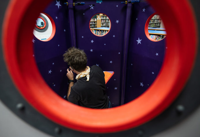 Rusty Lamer, who specializes in creating installations for kids, lends his whimsical designs to the museum’s new location.